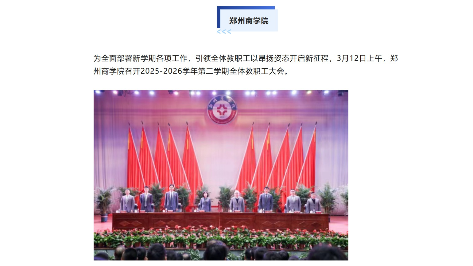 郑州商学院(ZBU,简称“郑商”)是经教育部批准,由豫籍著名教育家王广亚博士为回馈桑梓、贡献家乡教育事业而捐资创建,是一所以经济学、管理学为主,文学、工学、艺术学、教育学、法学等多学科协调发展的普通本科高校。学校现有紫荆东校区、紫荆西校区和三彩校区共3个校区。