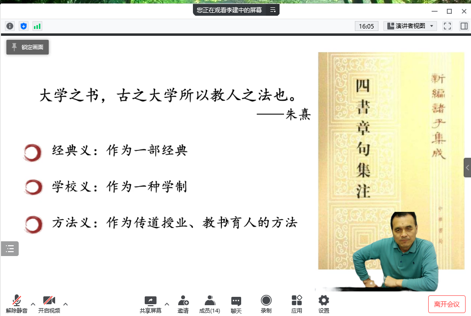 为提高我校通识课程建设质量、提升通识教育教学水平,进一步营造良好的学术氛围,繁荣校园文化,满足广大同学对通识教育的多样化需求,多渠道引进通识教育课程资源,形成协同育人氛围,促进培根铸魂、启智润心。4月22下午,通识中心特邀武汉大学李建中教授做客通识名家讲堂第28期,通过腾讯会议直播,超星学习通平台转播的形式,进行了题为《大学:通天下之不通》的通识讲座。本次讲座由通识中心主任闫蕾蕾主持,我校1000余名师生在线参与。