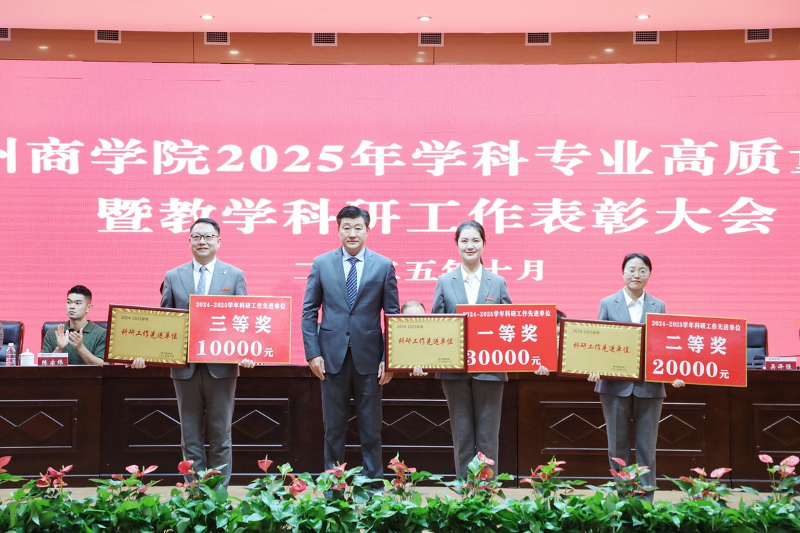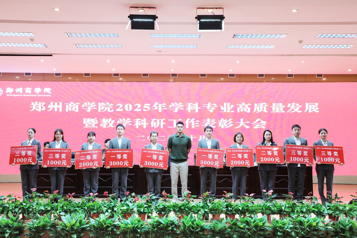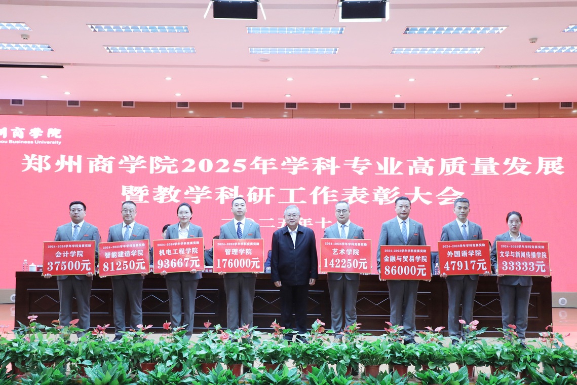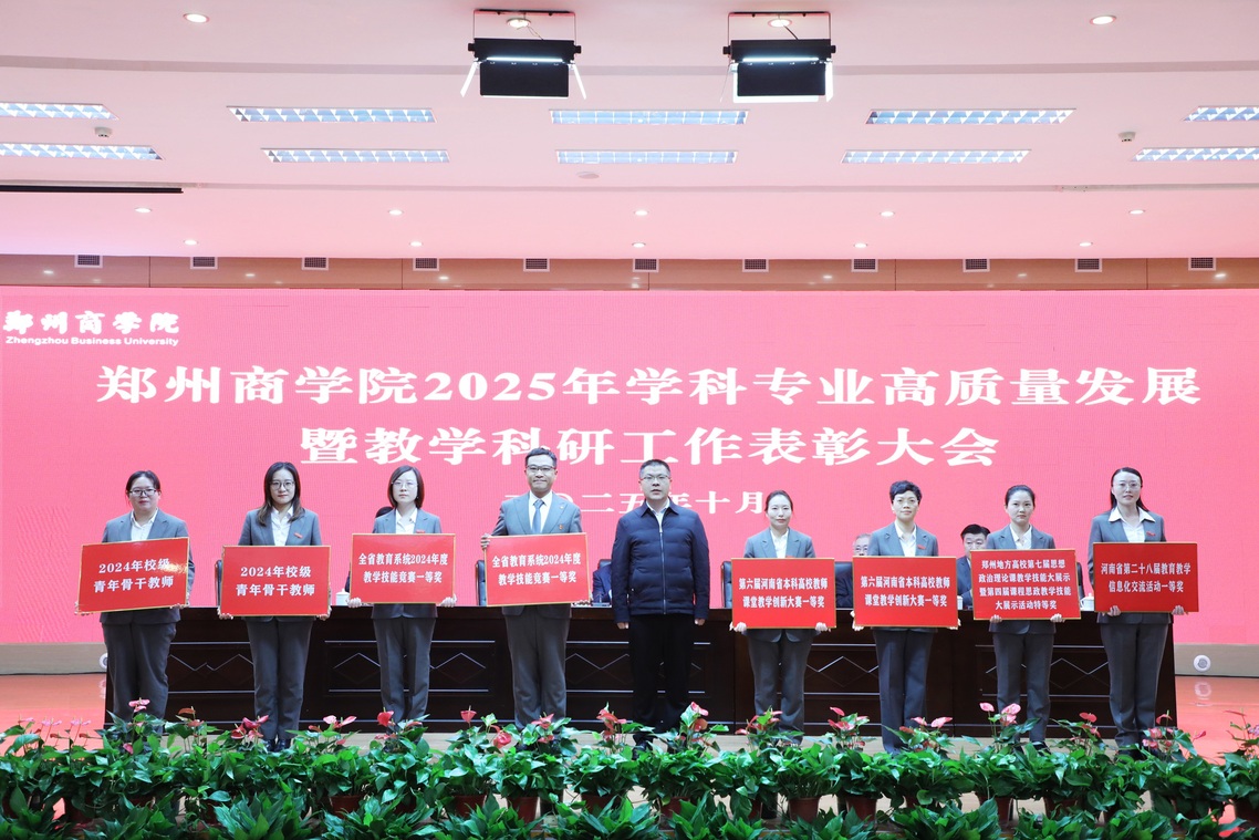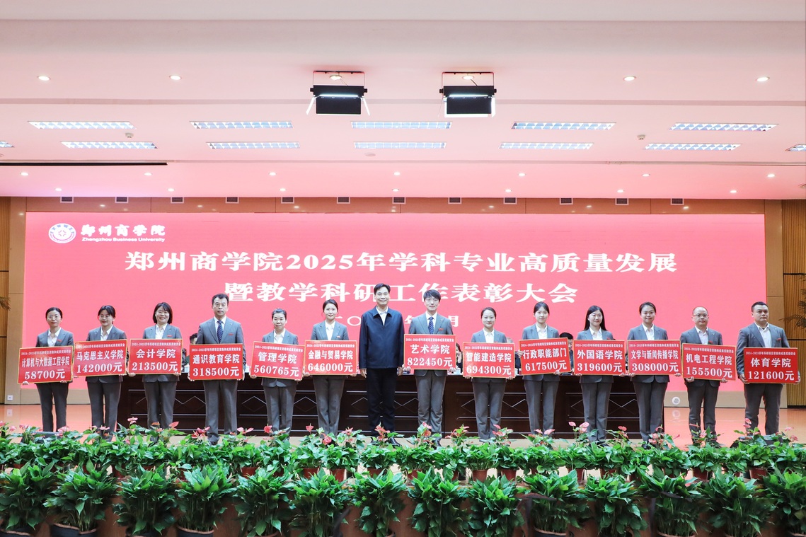 河南省教育厅二级巡视员曹克舜在讲话中代表省教育厅向大会的召开表示祝贺,向受到表彰的教学科研先进集体和个人致以敬意。他指出,学科专业建设是高校发展的根基,党的二十届四中全会审议通过的“十五五”规划强调,要将一体推进教育、科技、人才发展放在突出位置,要优化高校布局,分类推进改革,统筹学科设置。这充分体现了国家对学科专业建设的高度重视,高校必须立足时代要求,聚焦区域发展,服务国家发展大局。郑州商学院作为我省重要的应用型本科高校,近年来在学科专业建设方面取得了显著成效,特别在商科专业建设、人才培养方面形成了鲜明特色。他聚焦当前高等教育新形势新要求,围绕学科建设、内涵发展、人才培养等方面对学校发展提出指导意见:一是要把握发展大势,明确建设方向,提升学科专业的战略定位。二是要聚焦区域发展,增强服务能力,打造郑商服务品牌。三是要聚力提质进位,强化内涵建设,夯实高质量发展根基。四是要聚智人才培养,加强师资队伍,提升教学科研能力。希望郑州商学院牢牢把握历史机遇,以更高的站位、更实的举措、更优的作风,进一步强化办学特色,提升办学质量,增强服务能力,加快建设特色鲜明的高水平商科大学,为我省高等教育事业发展和现代化河南建设贡献更多郑商力量。