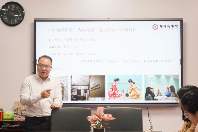 冯正斌院长介绍了西安外国语大学英文学院的发展历程、师资力量、学科布局及人才培养特色,重点分享了西外大英文学院在商务英语专业教学改革、科研创新及对外合作交流方面的丰硕成果。刘军伟教授阐述了商务英语专业课程体系建设、实践教学开展、产学研融合等方面的具体情况。