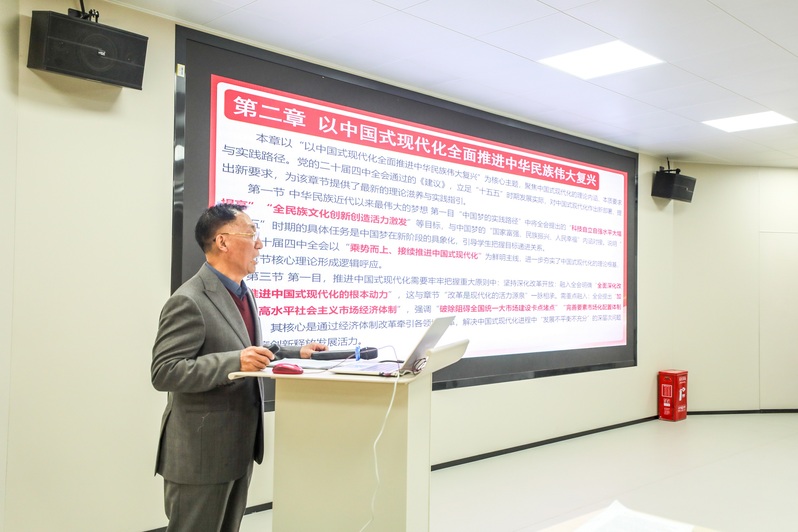 吴泽强校长在讲话中表示,马克思主义学院作为传播党的创新理论、培育时代新人的主阵地,肩负着“讲好中国故事 传播好中国声音”的重要使命,要将学习贯彻党的二十届四中全会精神作为当前和今后一个时期的重要政治任务,做到认真研学、学深悟透,全面准确领会其丰富内涵与精髓要义,推动思政课建设与党的创新理论武装同频共振。