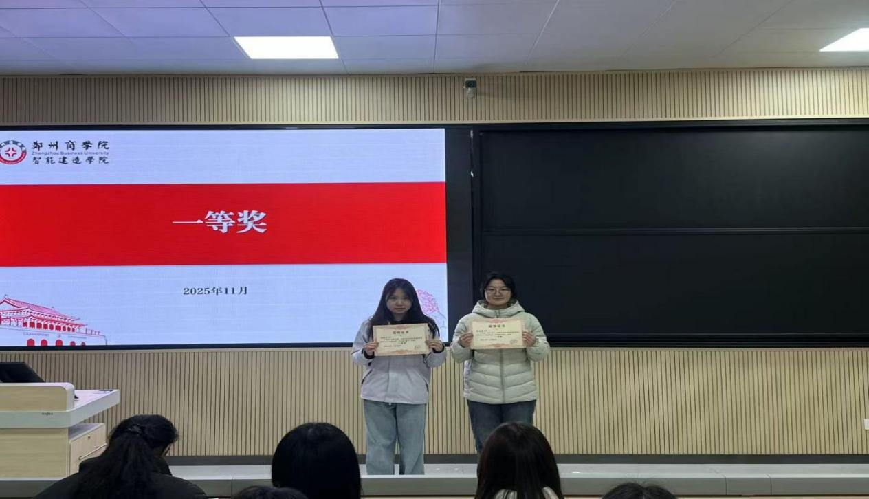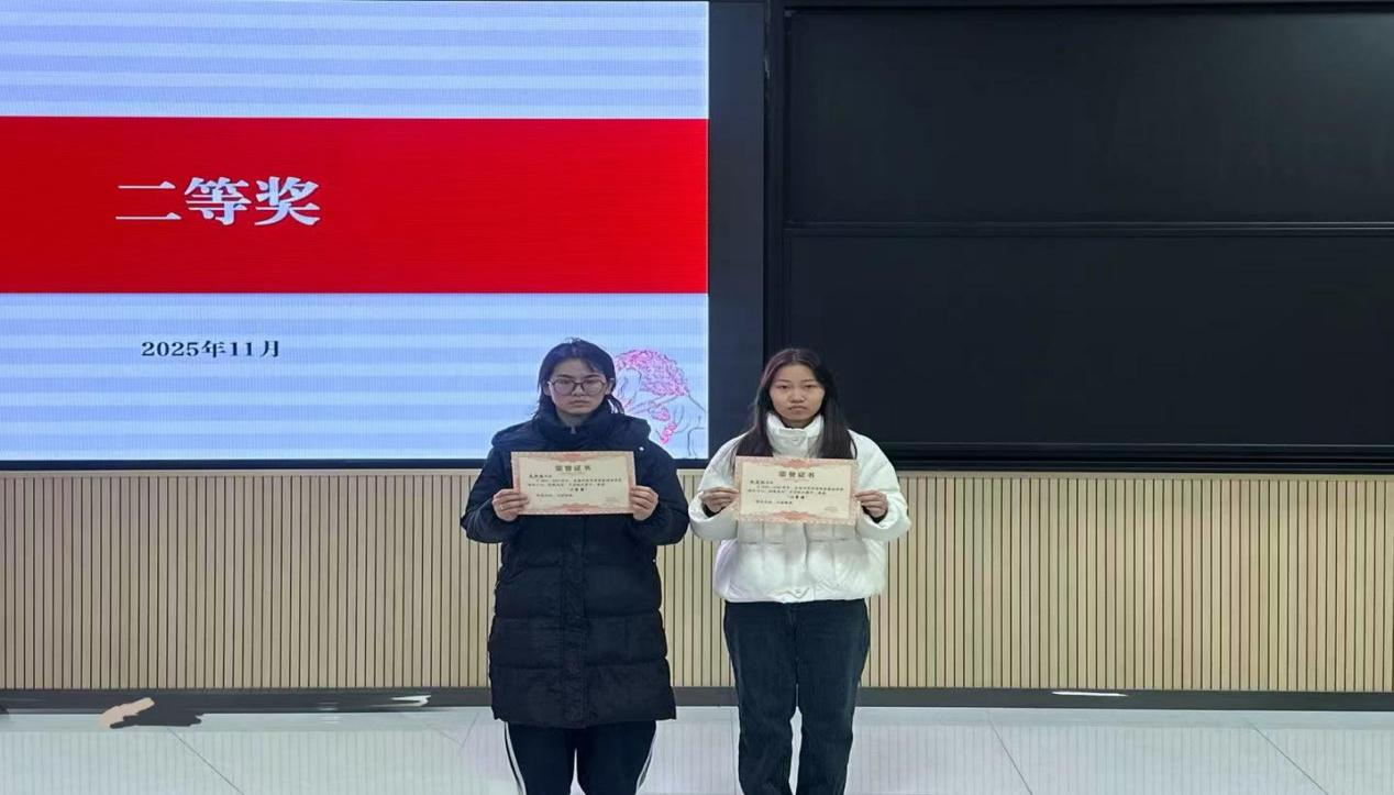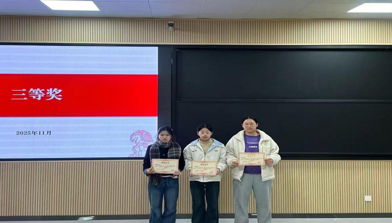 颁奖仪式上,辅导员及评委代表为获奖同学颁发证书并合影留念。