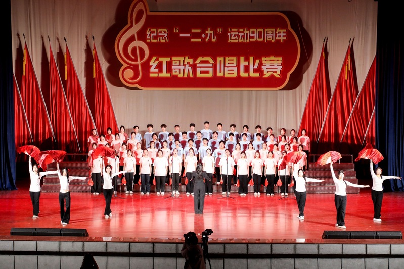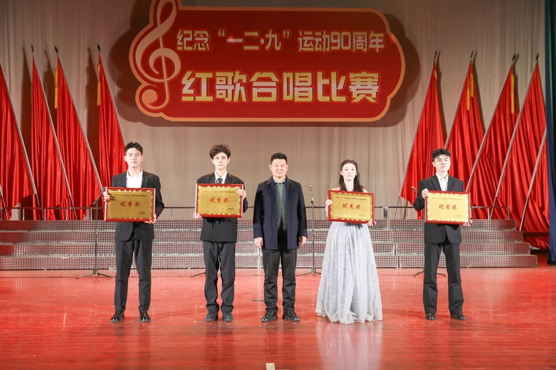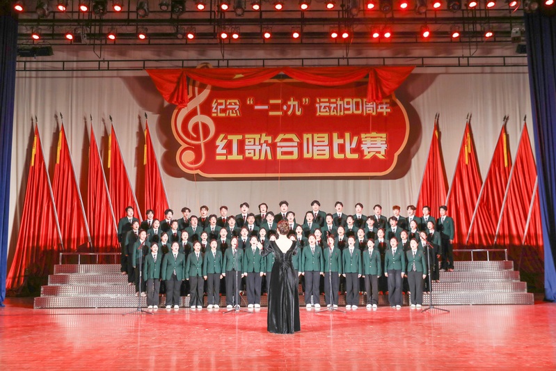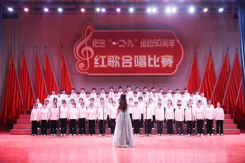 赓续红色血脉,厚植家国情怀。12月9日晚,我校纪念“一二·九”运动90周年红歌合唱比赛在成功大会堂隆重举行。校党委副书记兼纪委书记裴晓涛,相关职能部门负责人、各学院党委书记及师生代表共计2000余人现场观看。巩义市音乐家协会主席司永山、副主席王冰,校团委老师王颖璇,文传学院老师康文涛,美育教育中心老师李芮晗受邀担任评委。