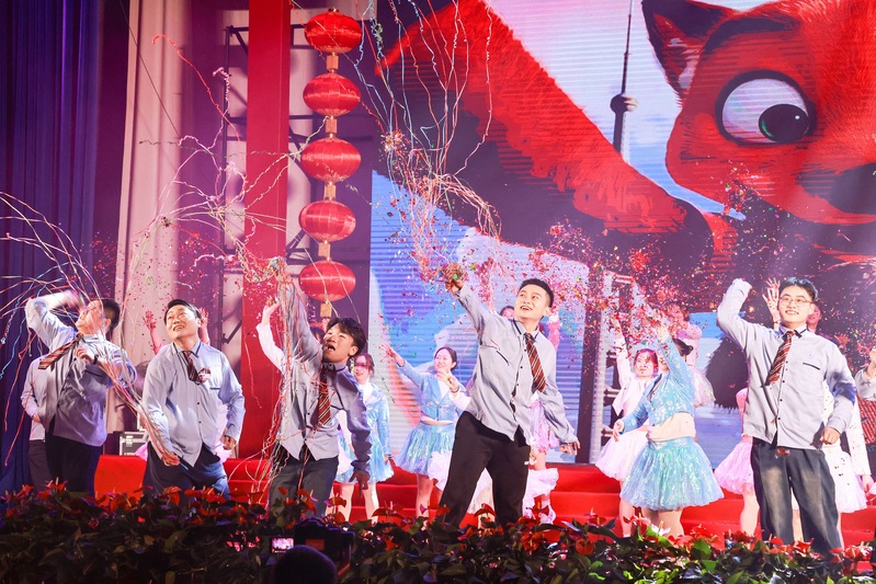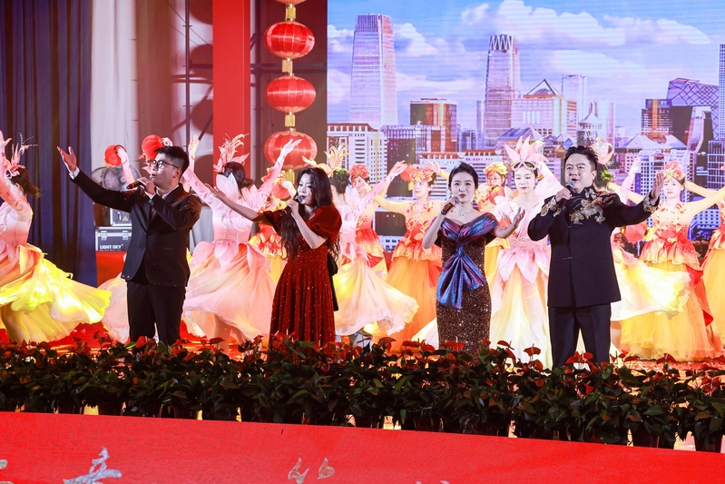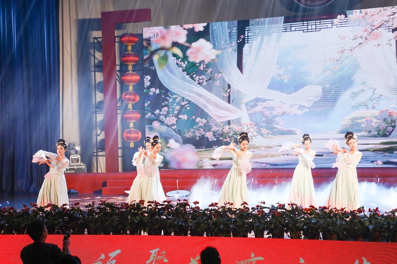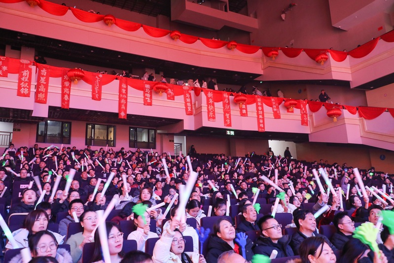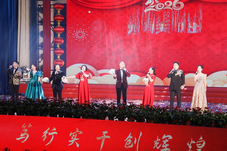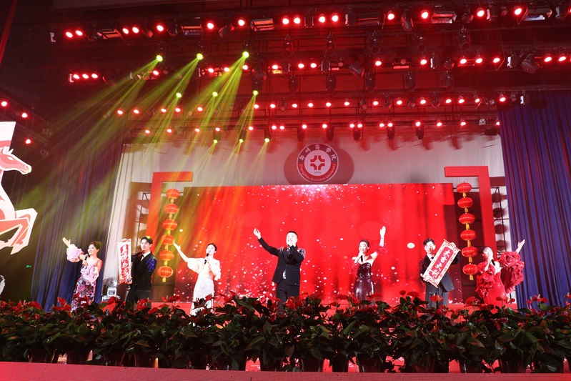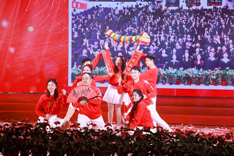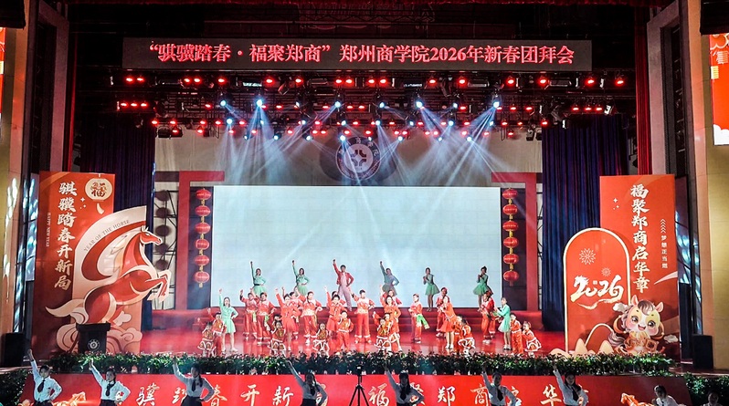 开场视频《非凡》回顾学校2025年的高光时刻,定格郑商的奋斗足迹,为团拜会热烈启幕。本次新春团拜会共分为“骐骥迎春”“福聚郑商”“共赴新章”三个篇章。开场舞《春节序曲》以经典旋律与灵动舞姿迅速点燃全场喜庆祥和的年节氛围;音乐小品《马年要健康》,在幽默诙谐的表演中传递出健康生活的积极理念;男团歌舞《感官先生》《火力全开》,以充满现代感与青春活力的舞台,将现场气氛推向首个高潮;歌舞《九万字》《春颂》,以深情的演唱与优美的舞蹈,传递出对希望的礼赞;歌曲串烧《岁月繁花》三首治愈系歌曲唤起温馨回忆,寄寓美好展望;粤语组曲《湾区乐好》,精选6首经典粤语歌曲,用熟悉的旋律唤醒共同的青春记忆与情感共鸣;表演秀《黑马踏来》《纸秀河洛》,巧妙融合太极元素与非遗剪纸艺术,带来强烈的视觉冲击与文化韵味;歌舞串烧《365个祝福》《ZOO》,用多元舞蹈打造层次丰富的视听盛宴,形式活泼、寓意吉祥;歌舞《歌声里的中国》旋律恢弘,勾勒祖国发展的壮阔画卷,情感饱满;《奇迹大郑商》以歌舞形式传递“扎根郑商、聚力同行”的核心思想;在全体演职人员共同唱响的《春天的芭蕾》《明天会更好》的歌声中,团拜会表演圆满结束,歌声中深情唱响对新年最美好的祝愿。
