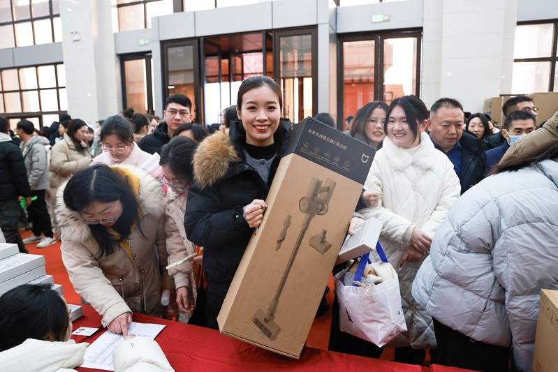 现场共设六个奖项,分别是特等奖冰箱25个、一等奖吸尘器45个、二等奖微波炉150个、三等奖智能电饭煲200个、四等奖米家台灯400个、五等奖小米多功能插排550个以及商家赞助奖5000元现金红包20个、九号电动车12辆。