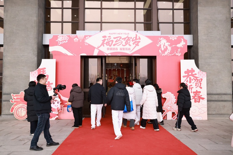 成功大会堂张灯结彩、喜气洋洋,处处洋溢着新春的融融暖意。大会堂外“福马贺岁”“恭贺新春”的装饰拱门喜迎郑商人,大会堂内“骐骥踏春·福聚郑商”打卡点人头攒动,大家纷纷打卡定格这欢聚的瞬间。