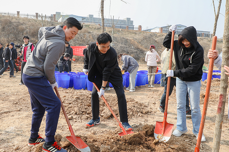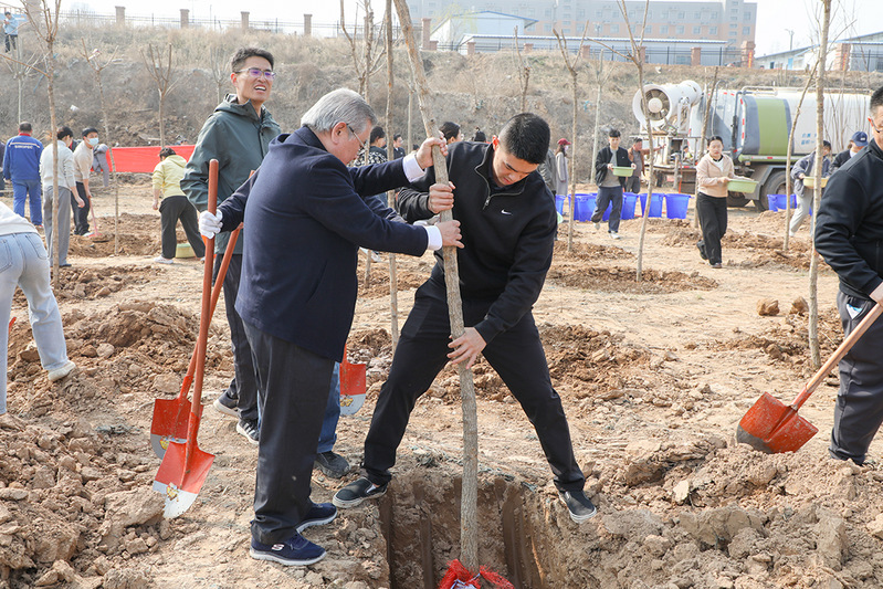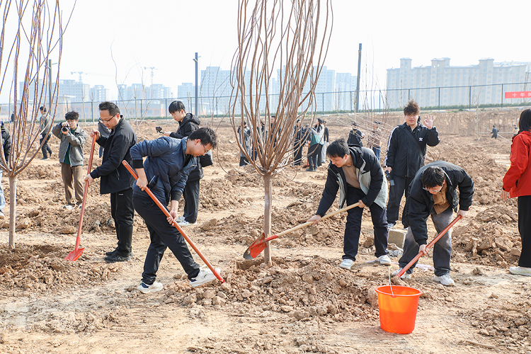 植绿护美郑商,践行生态担当。3月12日下午,在第48个植树节来临之际,董事长、执行董事和校领导班子成员、各部门负责人及教师代表,齐聚三彩校区,共同参与植树造林活动,以实际行动为校园添绿、为育人铸魂。