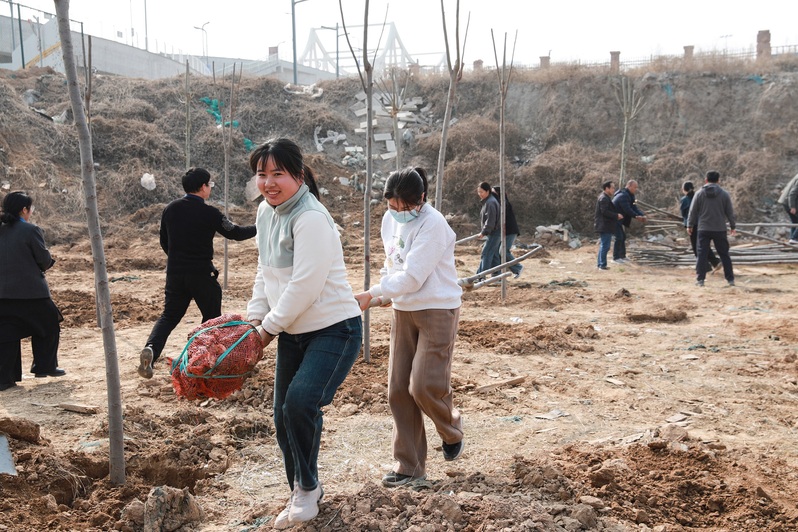 植树现场暖意融融、秩序井然。大家分工明确、协作默契,挥锹铲土、扶苗正干、浇水灌溉,每一个动作都认真细致、一丝不苟。微风拂过,新栽种的黄栌、白皮松、五角枫与栾树挺拔而立、生机初显,不仅为美丽校园增添了一抹鲜活绿意,更象征着莘莘学子在郑商的悉心培育下,向阳生长、逐梦前行。