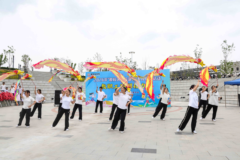 赛前,由体育学院和智能建造学院的学生代表进行舞龙和啦啦操的教学成果展示。