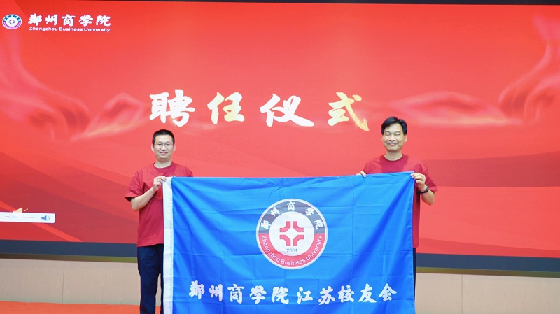 大会在庄严的国歌声中拉开帷幕。全体人员共同观看学校宣传片《郑商・正青春》,重温校园时光,感受母校发展新貌。校党委书记吴建军为江苏校友会授旗并颁发聘书。