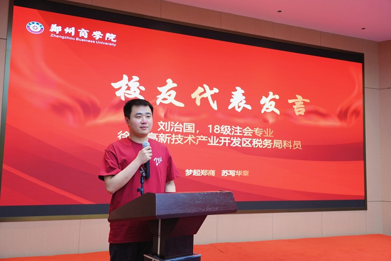 会上,校长助理泥川宣读江苏校友会理事会名单。江苏校友会会长俞彬彬宣读《郑州商学院江苏校友会章程》并发言,表达了服务校友、凝聚力量、回馈母校的坚定决心。优秀校友代表王国栋、刘治国先后发言,分享成长经历与奋斗感悟,展现了郑商人脚踏实地、奋勇争先的精神风貌。