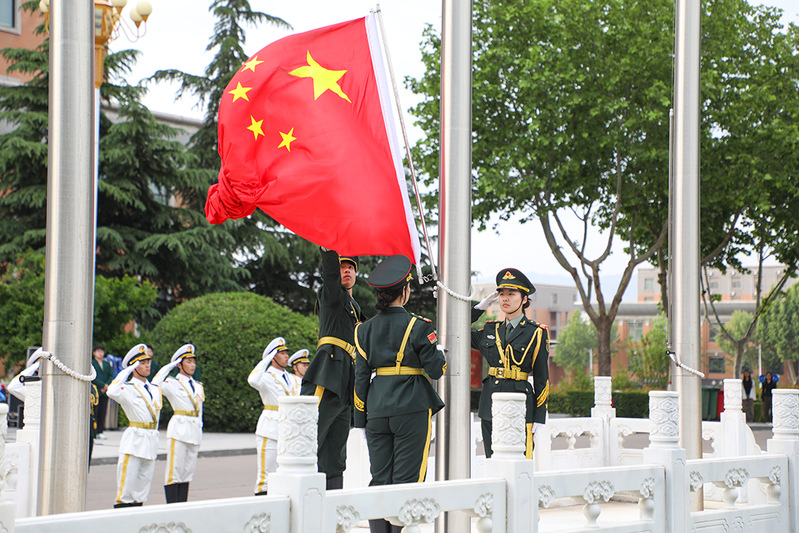 为传承爱国主义精神,赓续国旗护卫荣光,4月28日清晨,我校第二十一届、第二十二届国旗护卫队交接仪式暨表彰大会在东校区图书馆门前广场举行。校党委书记吴建军、校长吴泽强、董事长助理陈宗纬、校党委副书记兼纪委书记裴晓涛,相关职能部门负责人、各二级学院党委书记、辅导员及学生代表参加仪式,共同见证这一庄严时刻。仪式由校团委书记张鹏主持。