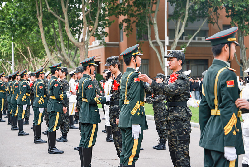 学工部部长路程宣读了《关于表彰第二十一届国旗护卫队和任命第二十二届国旗护卫队成员的决定》,第二十二届队员为第二十一届队员佩戴光荣花,与会领导为优秀国旗卫士代表颁发荣誉证书、集体照和纪念奖章。第二十一届国旗护卫队成绩斐然,众多队员担任学生干部、荣获校内外各项荣誉。