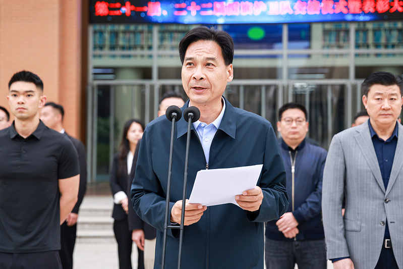 校党委书记吴建军讲话,他代表学校向圆满完成使命的第二十一届国旗护卫队致以崇高敬意,向新任的第二十二届国旗护卫队表示诚挚祝贺。他强调,国旗是国家的象征,护卫国旗是荣誉更是责任,希望新一届队员秉持优良品质、严明纪律、扎实作风,用行动捍卫国旗尊严,以赤子之心诠释爱国情怀。同时,他向全体郑商青年提出三点希望:一是立忠诚报国之志,锚定青春奋斗航向,将个人理想融入国家前途与民族命运;二是求真创新强本领,珍惜韶华、深耕专业,练就服务国家、奉献社会的真本事;三是修身立德守初心,明大德、守公德、严私德,争做品德高尚、作风严实的新时代好青年。