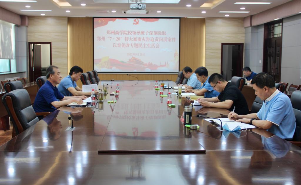 根据省纪委机关、省委组织部和省委教育工委有关工作安排,按照《中共河南省委教育工委办公室 河南省教育厅办公室关于深刻汲取“7·20”特大暴雨灾害追责问责案件教训开展以案促改专题民主生活会的通知》要求,5月28日,我校领导班子在行政楼第一会议室召开郑州“7·20”特大暴雨灾害追责问责案件以案促改专题民主生活会。校领导班子成员马书臣、吴泽强、师求恩、裴晓涛、张江涛参加会议,党办主任邢坤列席。会议由校党委书记马书臣主持。