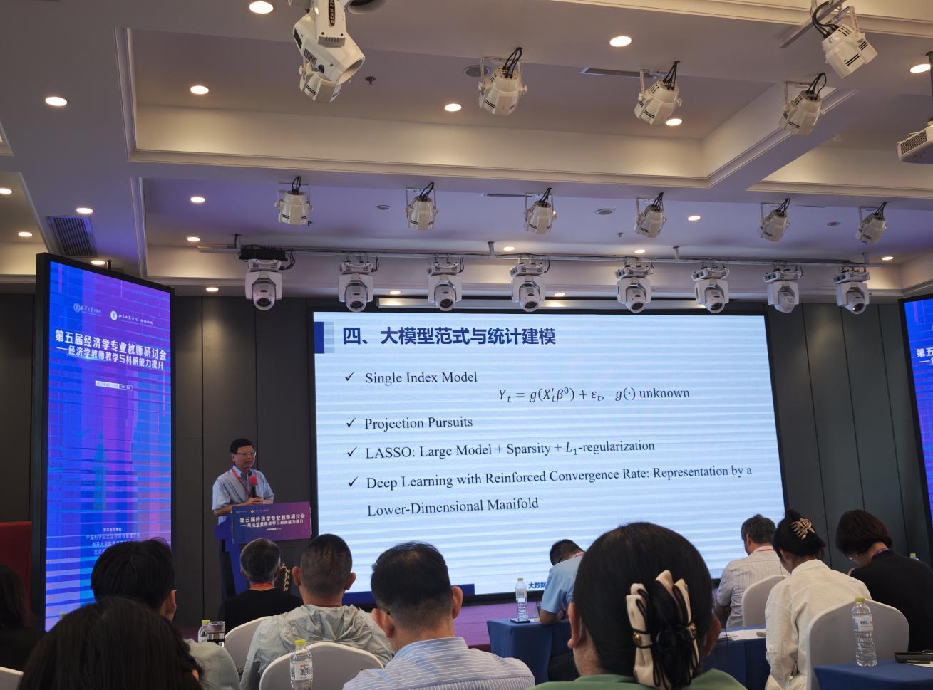 本次会议的亮点有以下内容:中国科学院大学洪永森教授分析经济学实证研究方法的相关应用,以实际数据为基础-提出假设--收集相关变量数据--运用回归分析--实验方法等定量工具--排除干扰因素--检验假设合理性--得出可验证结论。这种方法常见于解释经济现象如价格波动、就业变化等情境。南开大学张晓峒教授以计量经济学课程为例,介绍相关专业建设与课程设计的经验,讲授如何进行课程设计并进行示范教学。研讨会现场就教学目标、课程内容、教学模式、教学方法、教学资源开发等教学与人才培养问题进行交流与研讨。北京邮电大学陈岩教授着重分析基金申报经验,特别强调基金申报需精准匹配对应指南,最好提前半年构思框架。撰写过程突出创新点,用数据支撑研究价值,参考文献兼顾经典与前沿,体现学术脉络。同时还要多请同行前辈提出修改意见,严格把控格式细节,避免出现低级错误。华中师范大学罗恒教授围绕最新前言话题“AI工具赋能科研与论文写作”展开分享,主要分享当代高校教师如何借助人工智能工具,进行高效的数据处理和分析,包括摘要的撰写,英文的灵活使用,文献的综合管理及论文写作发表等。会议最后邀请《经济学报》编辑部王红主任从编辑眼中的好文章视角来进行分享,当今研究背景下如何撰写好文章,其中选好题是重中之重的事情,建议青年教师沿着专一化研究方向不断耕耘。