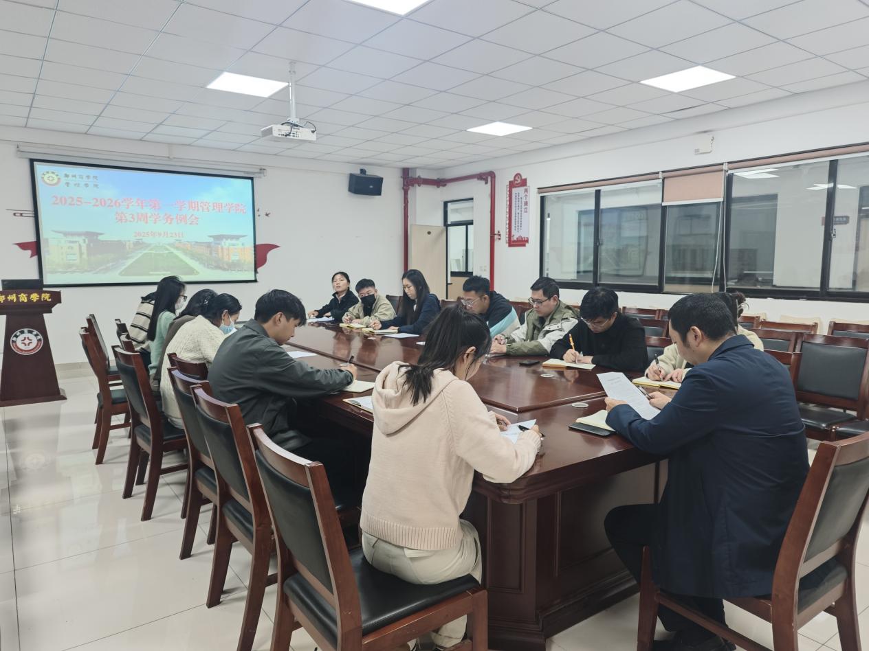 9月23日,我院在亚泽楼一楼会议室开展了2025-2026学年第一学期第3周学务例会。我院党委书记宋森、团委书记朱赛楠及全体辅导员参加会议。