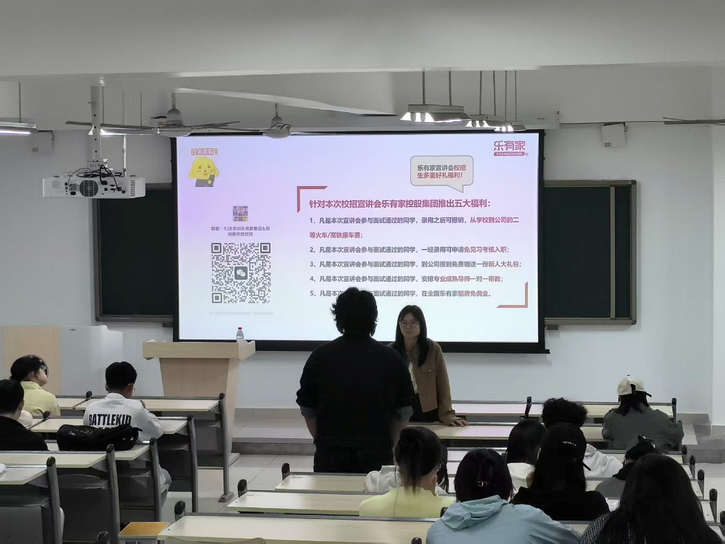 为满足我院毕业生好就业、就好业的需求,搭建毕业生与企业之间更快捷的桥梁,我院于9月27日在亚泽楼104室成功举办乐有家控股集团有限公司2026届毕业生宣讲会。