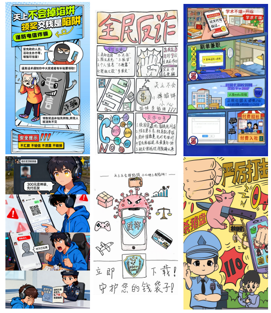 在学院的引导下,学生群体积极投身反诈宣传工作,以青春创意赋能反诈教育,涌现出一批形式多样、内容生动的反诈作品。部分学生发挥专业所长,拍摄制作了系列反诈短视频,通过情景再现的方式揭露诈骗陷阱;绘画爱好者们绘制了趣味十足的反诈漫画,将“不轻信陌生信息、不随意转账汇款”等反诈要点可视化,成为校园里的“反诈风景线”;同学们还集思广益,创作了“刷单致富是陷阱,贪图小利终受损”“天上不会掉馅饼,涉钱信息要留心”等朗朗上口的反诈口号。此外,辅导员组织班级同学开展案例分析,深入班级、宿舍开展巡回宣讲,分享反诈知识和自身感悟,以同龄人的视角增强反诈宣传的感染力和实效性。