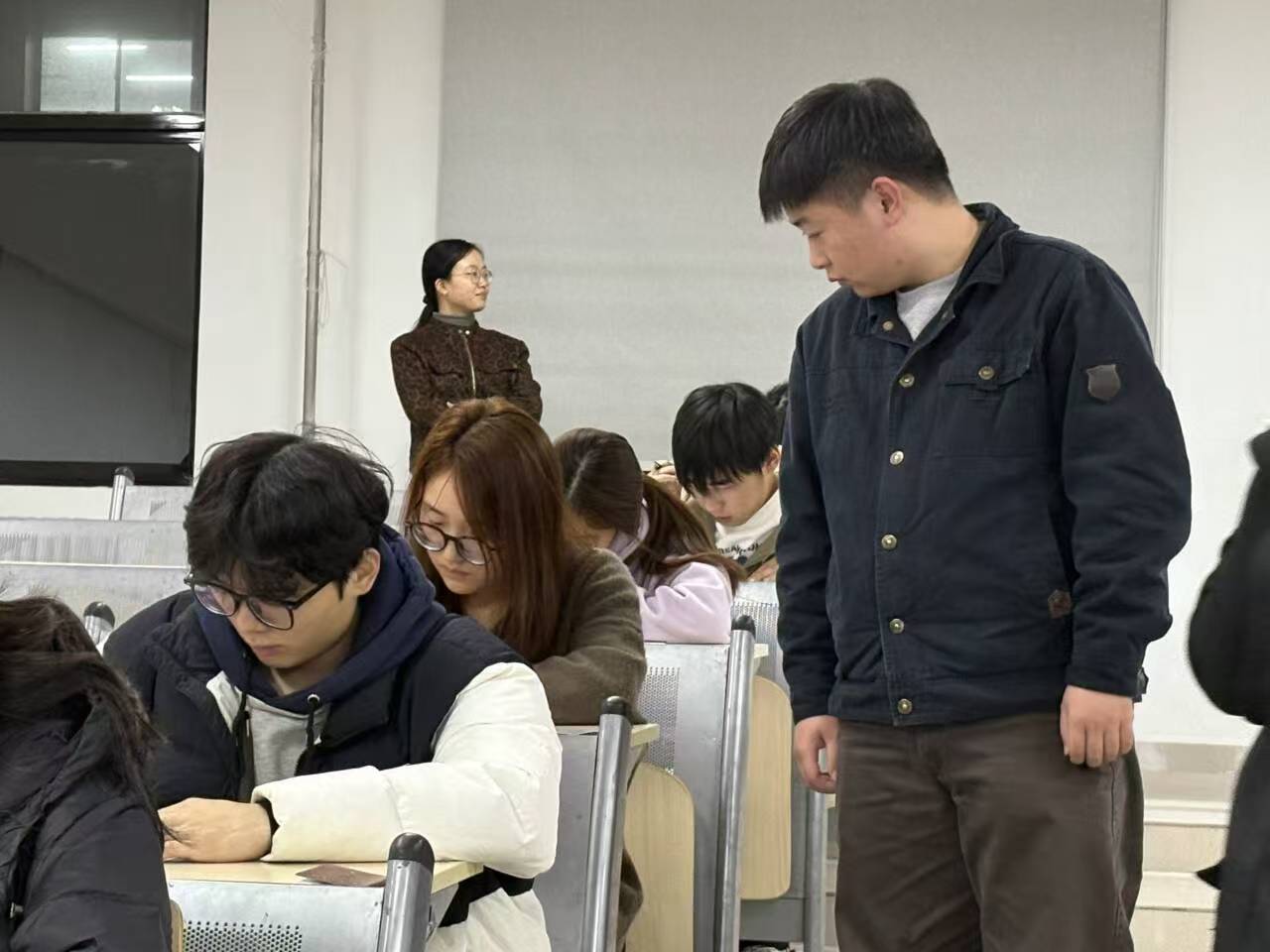 考试期间,我院党委书记宋森、团委书记朱赛楠以及辅导员老师深入巡查考场,对考场布置、考场秩序和学员答题情况仔细进行查看,展现出了我院对入党积极分子培训工作的高度重视和深切关心。