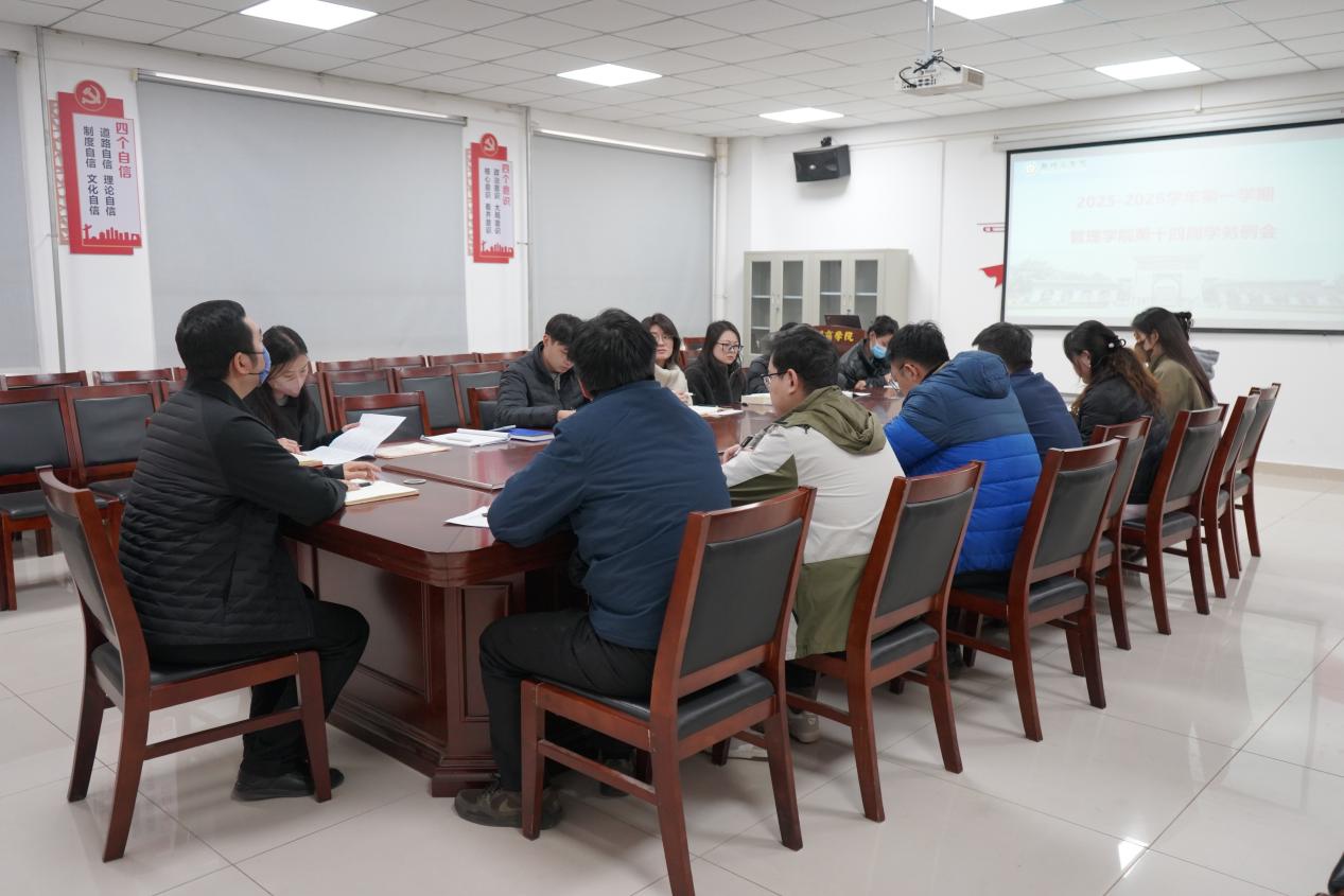 12月10日,管理学院在亚泽楼一楼会议室开展2025-2026学年第一学期第14周学务例会。我院党委书记宋森、团委书记朱赛楠及全体辅导员参会。