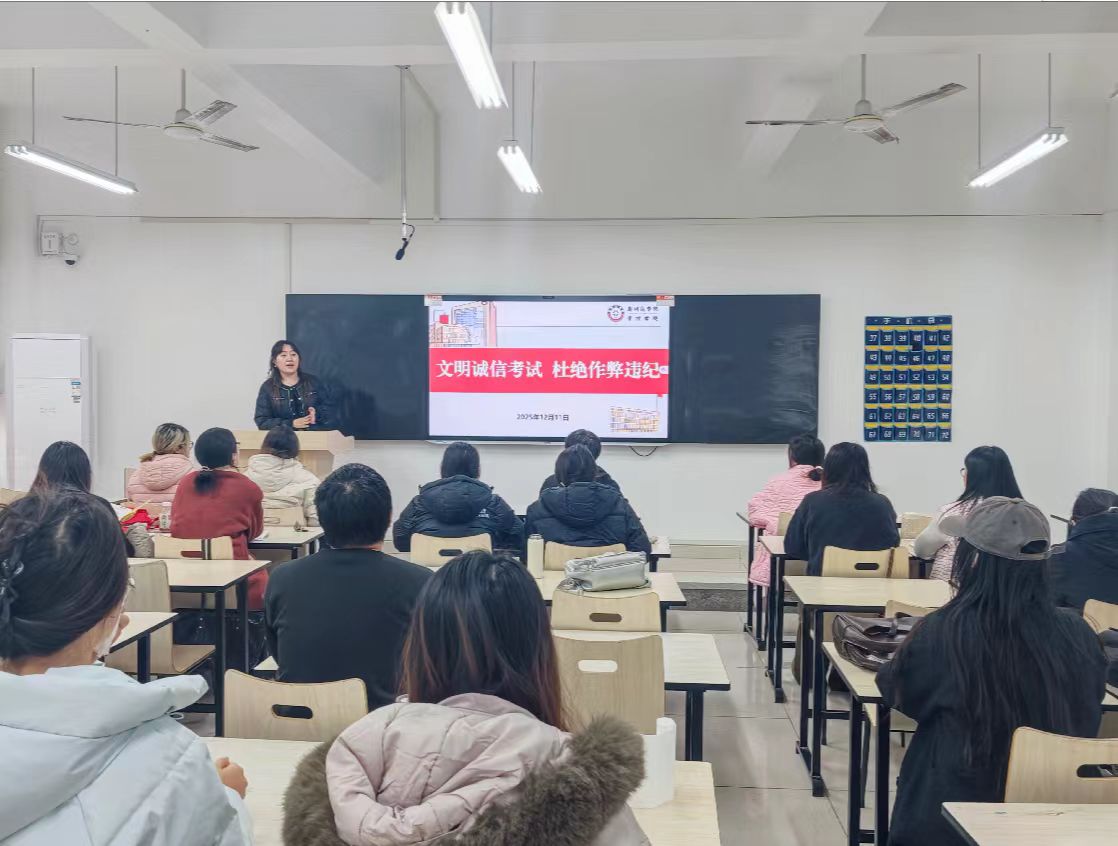 为营造风清气正的育人环境,维护各类考试的公平与权威,引导学生牢固树立诚信意识,自觉遵守考试纪律,以实际行动践行“诚信应考、文明作答”的庄严承诺,12月11日,我院针对即将到来的全国大学英语四、六级考试、全国硕士研究生招生考试以及后续期末考试,组织召开了面向全体学生的“诚信考试”主题教育班会。