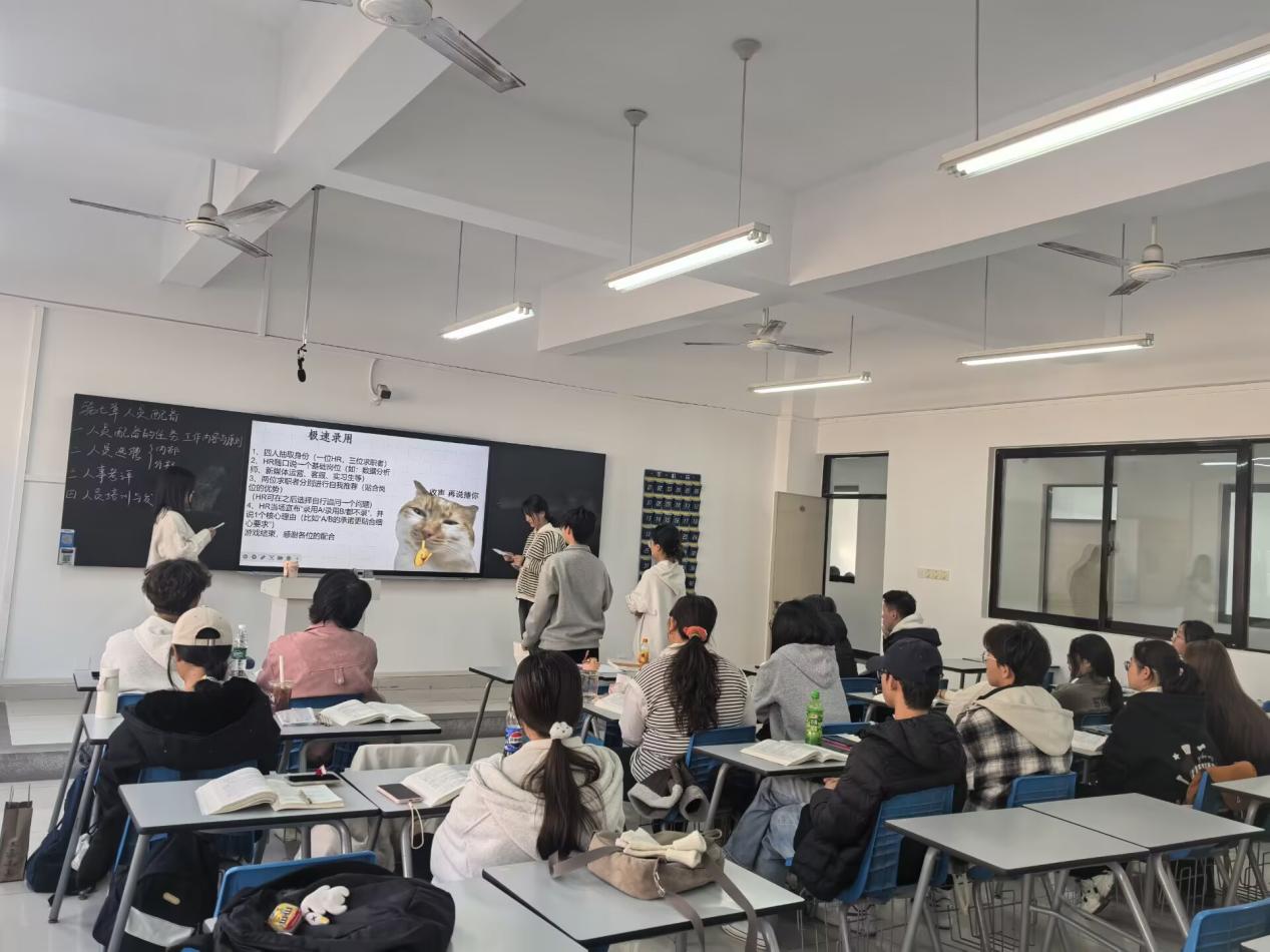 “课前精备、课中善授、课后勤思”,是黄信恒老师始终坚守的教学准则。课前精研学情,她善于从学生兴趣和社会热点中汲取教学灵感,让抽象理论变得生动可感,只为激发学生的学习欲望,达到最佳课堂效果。课堂上,她从不一味单向输出,而是善于创新教学方式,注重将抽象理论转化为生动体验。在讲授科学管理原理时,她设计了趣味纸飞机挑战,让学生在规定时间内折纸飞机,找出折得最多的同学分享方法并标准化流程,第二轮应用新方法,整体效率显著提升。学生通过亲身体验流程改进与标准化对提升效能的意义,让知识可触可感、充满温度,直观地领悟了理论的核心内涵。