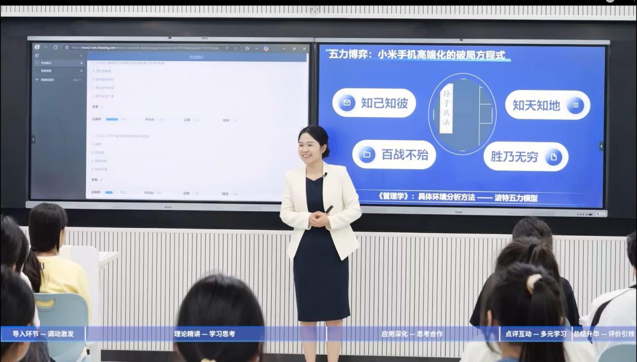 面对数字经济时代对商科人才的复合型需求,她主动重构课程体系,将人工智能应用、商务数据可视化分析等前沿内容有机融入教学。通过案例教学、实验实操等多样化形式,为传统商科注入新内涵,充分激发学生的学习积极性。同时,她着力打造“理论-实训-实战”的一体化培养路径,以企业真实需求为导向,深化校企合作,让学生直面真实商业问题,在实践中提升决策能力与资源整合能力。