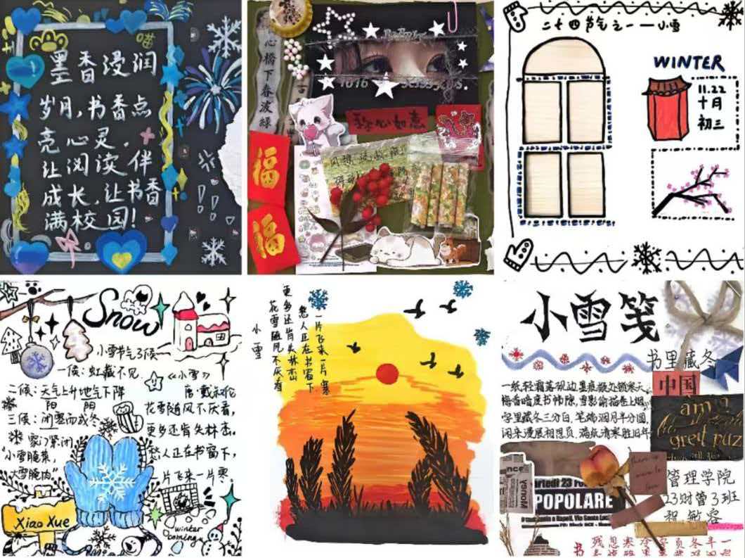 管理学院以经典名句寻宝活动与节气主题手帐创作活动,将阅读与文化传承深度绑定。名句寻宝活动让凝练的文字走出书本、融入日常——不仅能积累文化素材,更能在诵读中与先贤对话,感受文字背后的精神力量;节气主题手帐创作活动则以二十四节气为线索,鼓励大家结合民俗知识、诗词典故,用文字、插画记录节气变化与生活感悟,从“小雪”的诗词摘录到“立冬”的习俗手绘,既锻炼了动手能力与创意整合能力,也让蕴含千年智慧的民俗文化,在笔墨流转间扎根于同学们的心中。