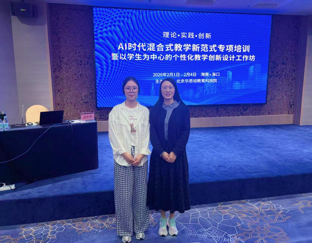 为主动适应生成式人工智能技术对教育生态的深刻重塑,深入推动混合式教学从技术应用向模式重构跃迁,切实提升教师以学生为中心的个性化教学设计与创新能力,2026年2月1日-4日,我院吴阳阳、李灵两位骨干教师赴海口参加了“理论•实践•创新:AI时代混合式教学新范式专项培训暨以学生为中心的个性化教学创新设计工作坊”。本次培训汇聚了全国多所高校的教学管理者与一线教师,通过线下集中学习的模式,聚焦智能技术赋能下的教学深度变革。