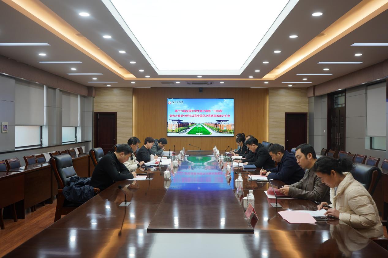 为高标准、高质量完成第十六届大学生电子商务“创新、创意及创业”挑战赛(简称:“三创赛”)大数据分析实践赛全国总决赛承办工作,统筹推进赛事筹备各项任务,3月8日上午,我校在行政楼第一会议室召开赛事筹备专题讨论会。本次会议邀请“三创赛”竞赛组织委员会主席李琪教授、“三创赛”竞赛组织委员会副主席彭丽芳教授、浙江师范大学邹益民教授以及“三创赛”竞赛组织委员会秘书处李磊莅临指导。我校校长吴泽强、副校长刘升阳、教务长邱培磊、管理学院党委书记宋森、管理学院副院长张卫丽、市场营销教研室主任张玲燕等核心筹备人员参会。会议由管理学院院长李晓翠主持。