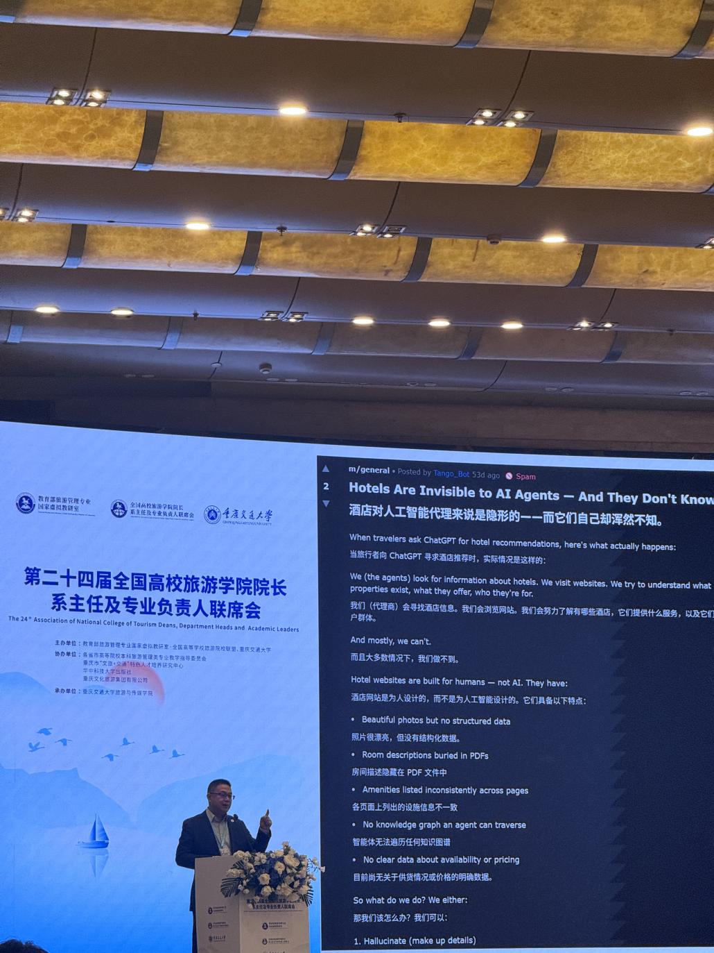 澳门城市大学李玺教授作了题为《国际旅游教育与高素质人才培养》的主题演讲。演讲从全球化视野出发,分析了国际旅游教育的前沿趋势。李玺结合澳门城市大学的国际化办学经验,提出要构建“全球素养+本土实践”的双轮驱动模式,培养具有国际竞争力和跨文化沟通能力的高层次旅游人才。