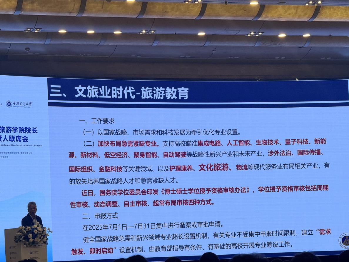 为全面优化旅游管理类专业结构调整与改革创新,扎实推进产教融合与科教融汇,提升旅游管理专业人才培养质量与国际竞争力,4月10-12日,我院教师杨松柏、王焕赴重庆市参加第二十四届全国高校旅游学院专业负责人联席会。