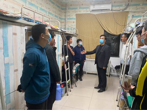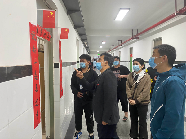 为扎实做好学校疫情防控工作,坚决筑牢校园疫情防控安全线,切实抓好学生线上学习质量。5月8日晚,师求恩校长深入学生宿舍看望慰问学生,检查指导疫情防控和线上教学工作。教务长刘升阳、建工学院党委庞艳华书记及辅导员吴森老师等陪同检查。