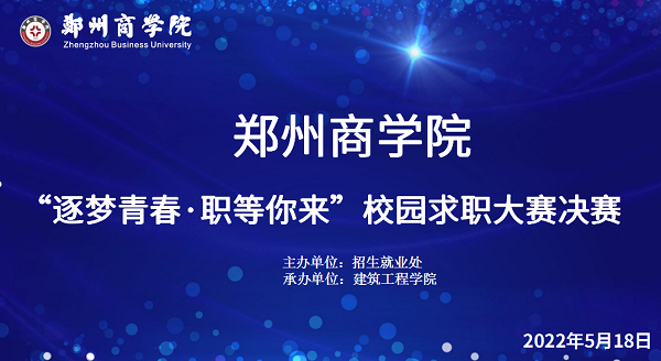 为增强职业发展教育实效,帮助大学生有效提升自身的就业技能与实践能力,由招生就业处主办,建工学院承办的郑州商学院2022年“逐梦青春,职等你来”校园求职大赛决赛于5月18日晚,在图书馆五楼报告厅顺利举办。