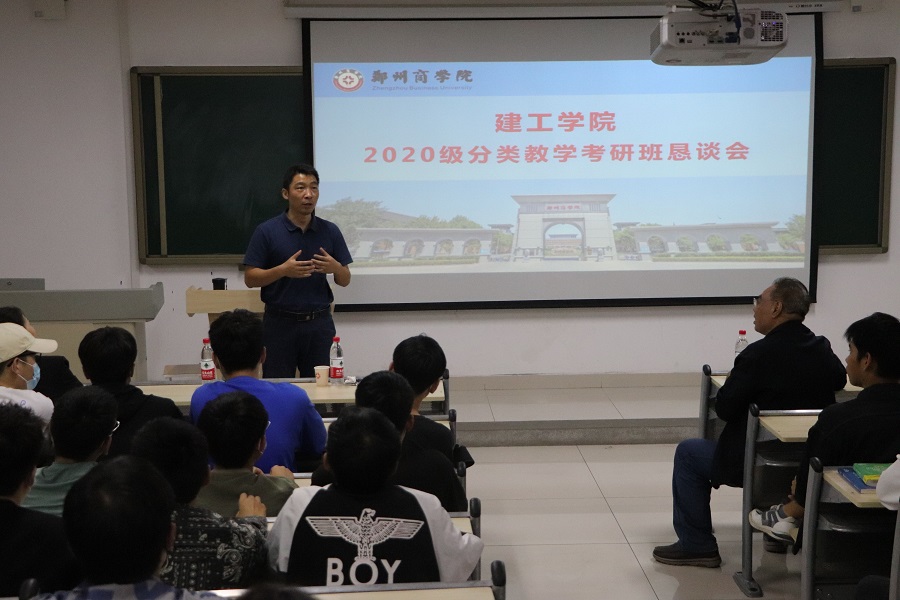 为进一步推进学院2020级本科学生分类教学工作,巩固教育教学成效,我院于9月20日晚在亚泽大楼104教室组织开展了2020级本科分类教学考研班恳谈会,校长助理刘升阳教授出席会议并做讲话。建工学院院长孙利民、副院长张燕燕、教学秘书郑丹、工程基础兼考研教研室主任李晓翠、以及20级考研班级全体学生参加了此次会议。会议由孙利民院长主持。