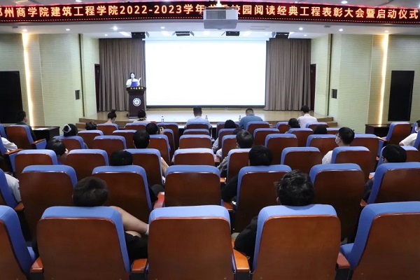 大会进行第三项,行政秘书兼团委书记刘帅宣读《建筑工程学院书香校园阅读经典工程实施方案》。