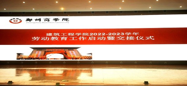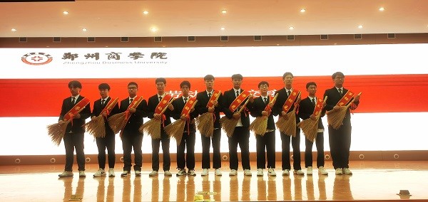 会议伊始,刘帅书记宣读《郑州商学院建筑工程学院2022-2023学年劳动小组长聘任决定》;学务处劳卫科科长李准为新任劳动小组长颁发聘书;张秋玉老师为新生代表颁发绶带,劳动小组长为2022级各班劳动委员传递“红丝带扫把”。