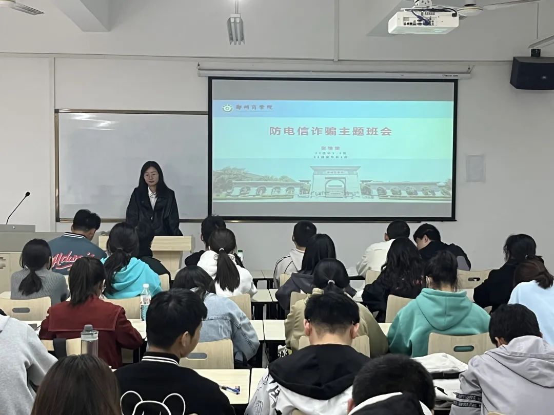 为进一步做好“反诈骗,防诈骗”安全教育工作,营造安全的校园环境,引导同学们增强安全防范意识和提升自我安全防护能力,保障学生人身财产安全。10月13日晚,建工学院组织各班级于亚泽楼开展防诈骗教育主题班会,为同学们予以提醒和警示教育。