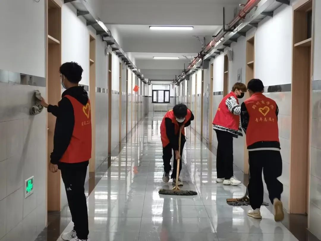志愿者们准时来到宿舍楼下集合,学生会负责人周密组织,学生志愿者积极配合。大家深入宿舍楼,用实际行动为同学们示范了打扫卫生的细节,打扫地面、清理楼道、水池、擦栏杆等,并对各个宿舍的安全隐患进行细致排查。全体志愿者齐心协力,充分发扬不怕脏、不怕苦、不怕累的精神,密切配合,经过大家的共同努力,宿舍面貌焕然一新。