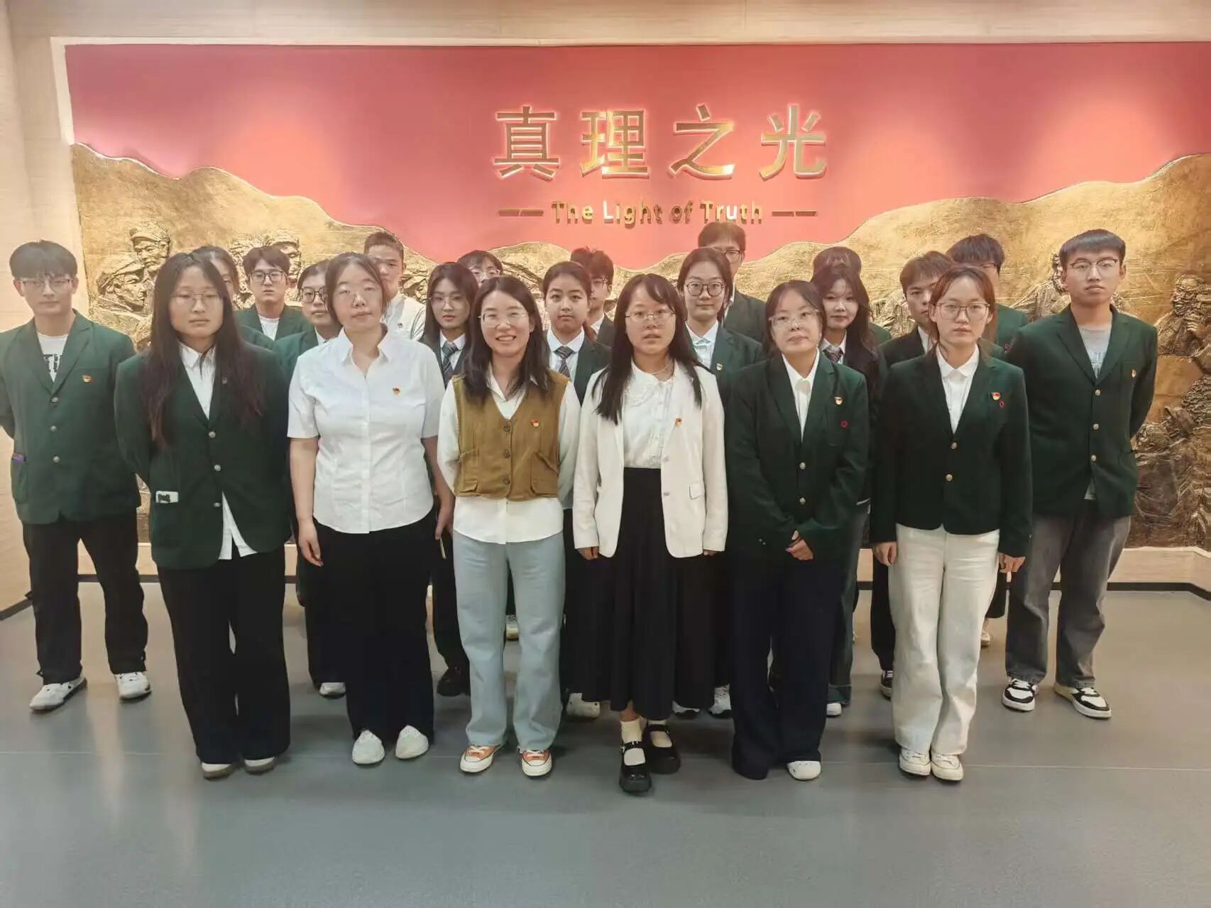 活动伊始,全体党员前往"真理之光"思政主题教育体验中心进行参观学习。在场馆讲解员的引导下,讲解员详细地讲解了场馆的建设初衷、整体架构以及丰富的数字化互动体验环节。通过将抽象的理论知识与可触可感的现实情境相结合,大家在沉浸式体验中深入思考,真切感悟马克思主义中国化创新理论所闪耀的真理光芒和蕴含的磅礴实践力量。