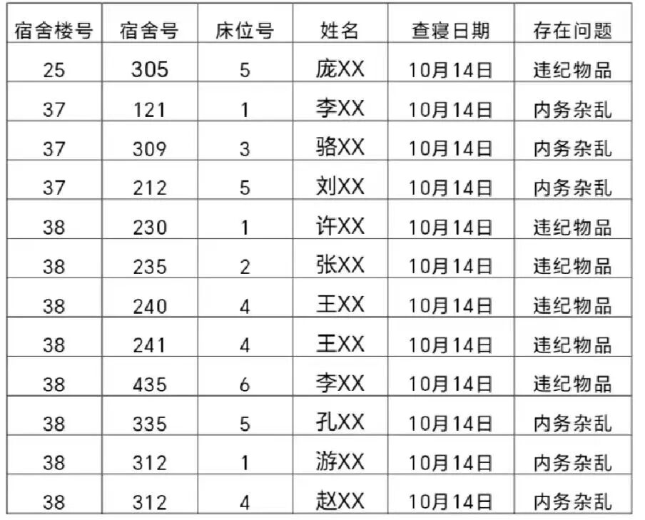 请以上宿舍本周内完成整改,共同营造良好的宿舍环境。