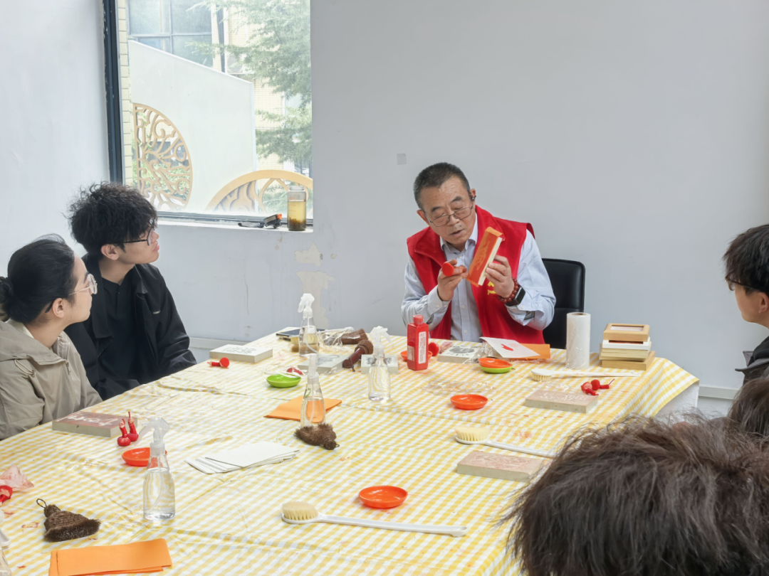 在非遗物质文化遗产课堂上,老师首先为大家带来了拓片与篆刻的专题讲解。他不仅细致剖析了两种技艺的历史渊源与制作流程,更通过展示精美的传统拓片作品、演示篆刻的基本手法,让大家直观感受到了其中的匠心独运与文化内涵。