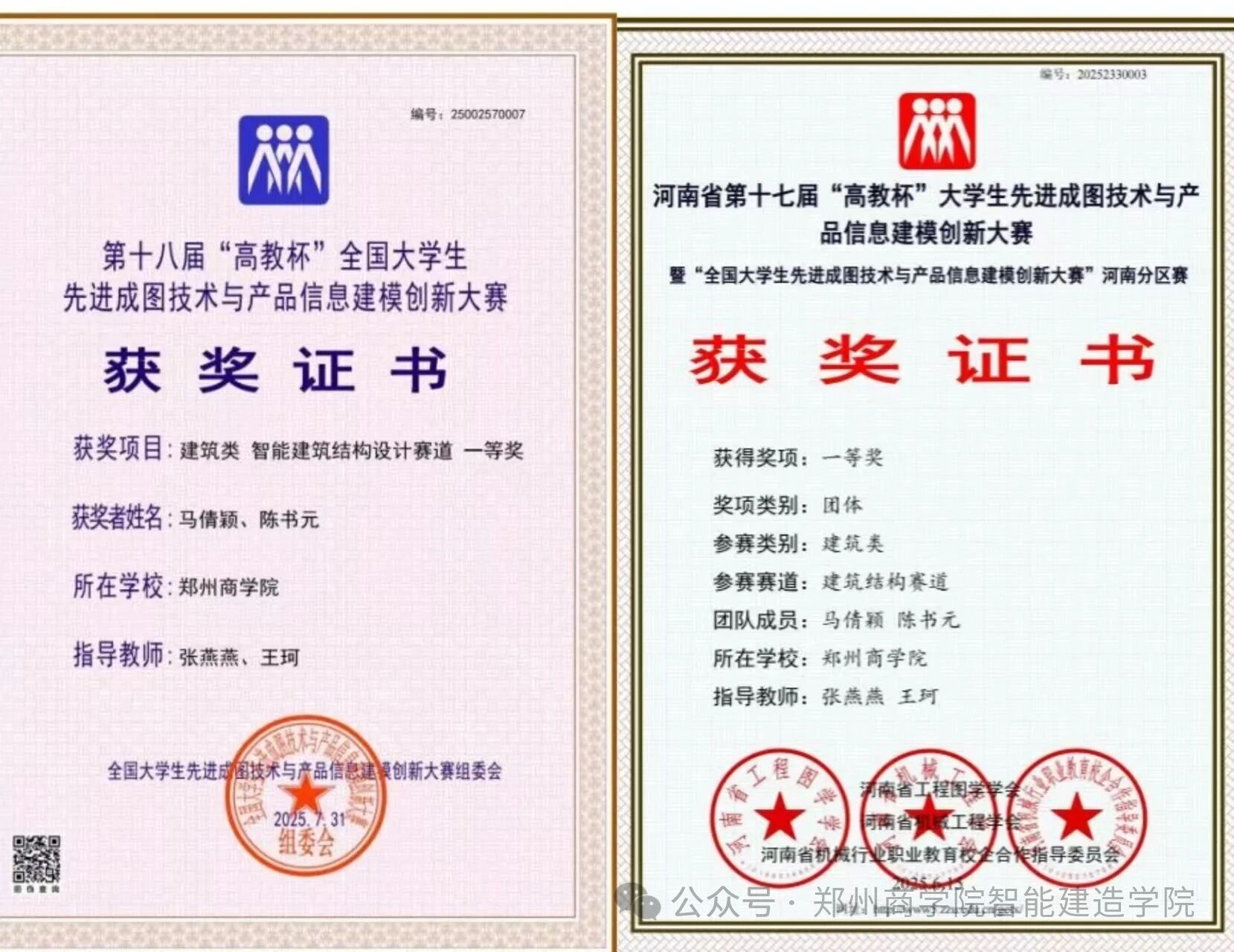 辛勤耕耘,终见硕果。学生先后在“建美中原”比赛中荣获二等奖,在“十八届全国大学生先进成图技术与产品信息建模”国赛中以河南省第一、全国第七的成绩斩获一等奖,此前也在省赛中拿下一等奖和二等奖。王珂也荣获2025年学科竞赛先进个人。这些成绩,属于每一个为之奋斗的学生,也是“以赛促学、以赛促教”的生动印证——教育,是一场师生共同奔赴的成长