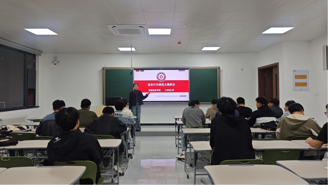 为进一步规范学生宿舍行为,营造安全、文明、整洁的住宿环境,10月28日,智能建造学院各班级开展“宿舍行为规范”专题班会。班会上,辅导员老师向同学们强调了遵守宿舍门禁制度对保障个人安全与宿舍秩序的重要性,讲解了宿舍卫生清洁的标准,重点强调严禁在楼内吸烟、使用违章电器的规定,让同学们深刻认识到违规行为的严重危害。此次宿舍行为规范专题班会的开展,明确了宿舍管理的各项要求,更增强了大家的安全意识与集体责任感。