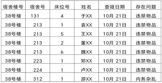请以上宿舍本周内完成整改,共同营造良好的宿舍环境。