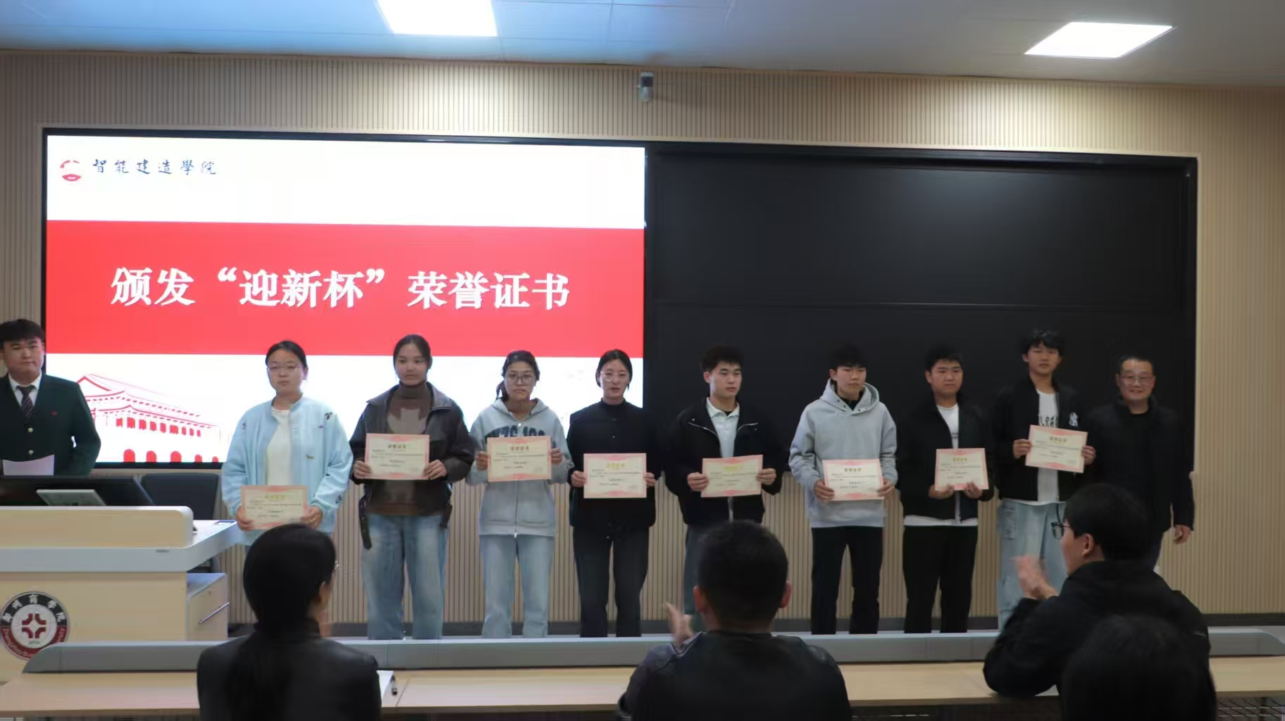 为表彰身体素养提升工程中表现突出的集体与个人,11月5日,智能建造学院在敏行楼举行秋季运动会表彰大会。现场为“迎新杯”篮球赛、秋季运动会、拔河比赛的获奖集体与个人颁奖,我院党委书记朱宏东、团委书记刘帅、辅导员汤帅毅和张雅雯分别为获奖代表颁奖。颁奖结束,朱宏东书记发表讲话肯定学子拼搏精神。此次表彰大会,既是对运动会成果的总结,更是对学子拼搏精神的肯定,为学院体育文化建设注入了新活力。