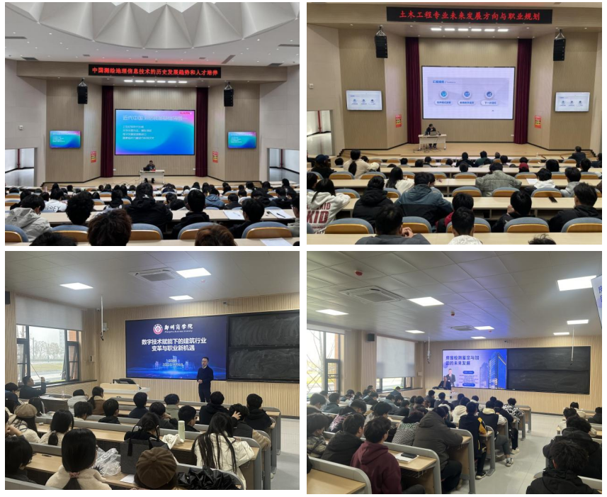 专家报告环节,学院邀请了河南省建设科技协会钱小龙高级工程师、广州南方测绘科技股份有限公司事业部王明磊总监、中国建筑第七工程局四公司赵阳光经理、河南国正工程质量检测有限公司任银海董事长等行业专家入校开展讲座,专家们围绕建筑行业发展趋势与人才培养、职业规划等主题进行了深入报告,有效提升了学生对行业动态的认知,强化了他们对专业理论知识的理解与技能掌握,为学生的专业成长与未来就业奠定了坚实基础。
