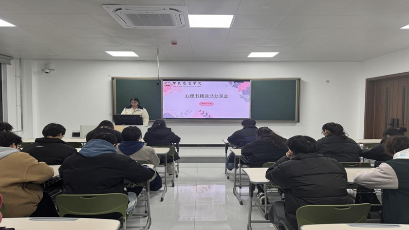 为引导学生通过书籍探索内心世界、提升心理调适能力,11月26日19:00,我院心理园地组织开展“悦读心灵·共话成长”心理书籍读书分享会。现场通过“书籍核心观点解读+个人感悟分享+互动答疑”的形式,围绕“自我接纳”“情绪管理”“人际关系边界”等话题展开深入交流。结合自身经历分享读书收获,台下学生积极参与讨论,纷纷表示从书籍中获得了心理慰藉与成长启发,学会了用更理性的视角看待生活中的困惑。此次活动为学生搭建了心灵交流的平台,进一步营造了关注心理健康、热爱阅读的校园氛围。