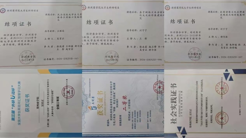 在学术竞赛方面,他屡获佳绩:荣获三项国家级英语类竞赛奖项、三项“挑战杯”省级荣誉、一项“三创赛”省级荣誉。此外,他还积极参与科研项目,主持或参与三项校级大学生科研项目立项、一项校级大学生创新训练计划项目。目前,他正带领团队参加全国高校BIM毕业设计创新大赛和2025“建美中原”河南省大学生建筑设计大赛,两项赛事均已进入决赛阶段,展现出扎实的专业功底与卓越的团队协作能力。